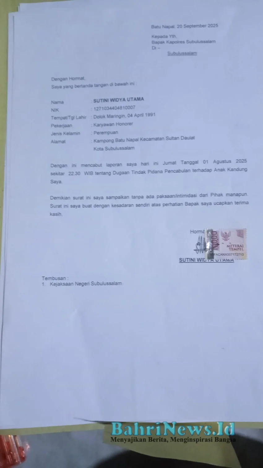 Ketua Umum DPP Aliansi Cyber Pers Aktivis Indonesia sekaligus Pimpinan Redaksi Aktivis-Indonesia.co.id, Herry Setiawan, S.H., C.BJ., C.EJ., menegaskan: penanganan perkara dugaan pelecehan seksual oleh Polres Subulussalam penuh kejanggalan, bahkan cacat hukum.