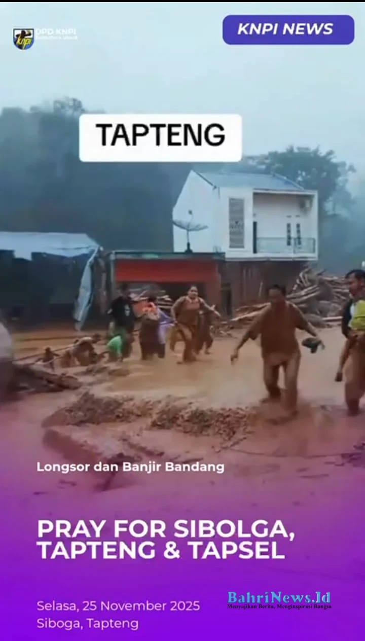 BahriNews.id | Medan – DPD Komite Nasional Pemuda Indonesia (KNPI) Sumatera Utara menyampaikan duka cita mendalam atas musibah banjir dan tanah longsor yang melanda Kabupaten Tapanuli Tengah (Tapteng) dan Kabupaten Tapanuli Selatan (Tapsel). Bencana yang terjadi usai hujan deras lima hari berturut-turut itu merenggut korban jiwa dan merusak sejumlah rumah warga.